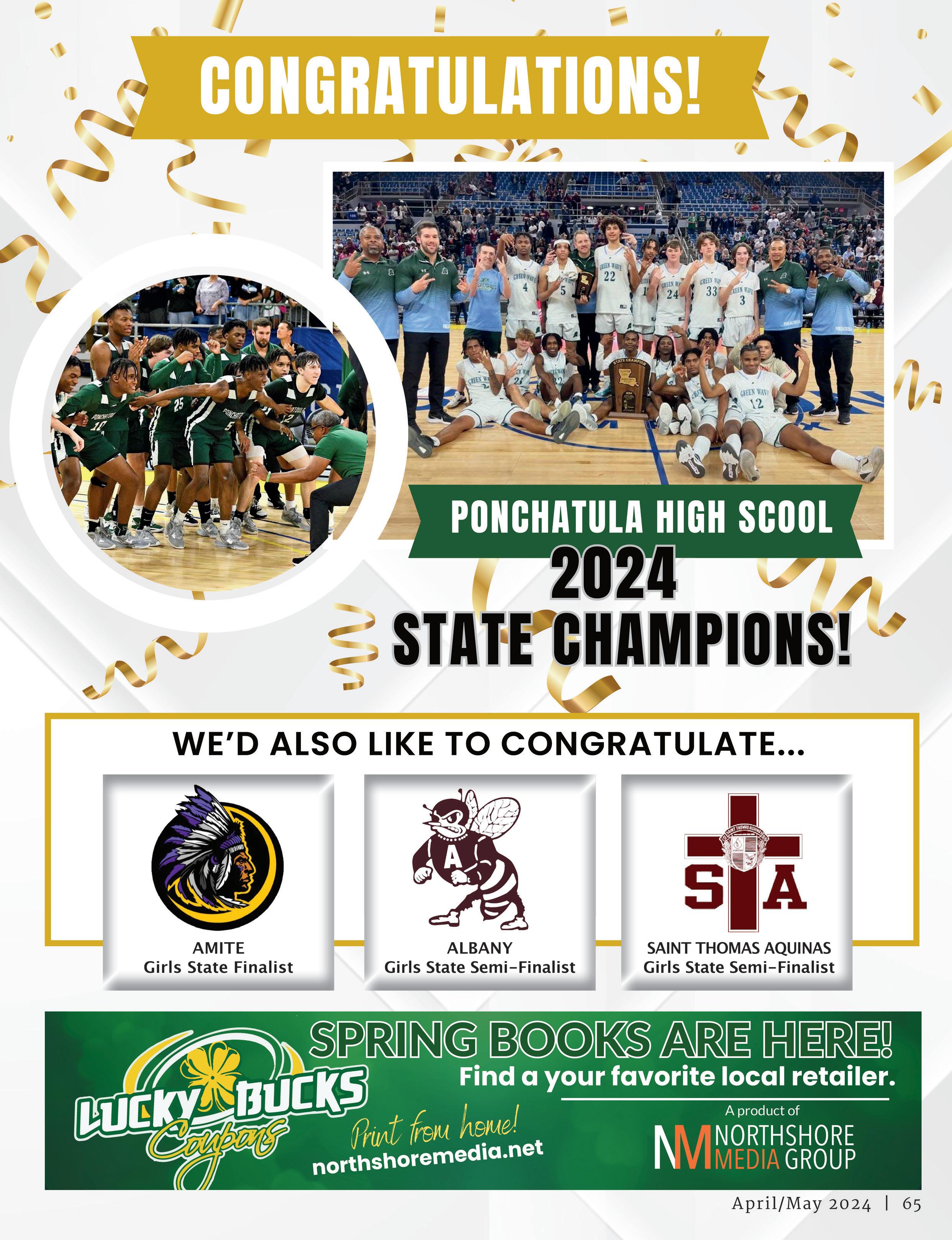 53 April/May 2024 | Thank you for voting us #1 FACEBOOK.COM/THE-ROYALE-OAK • 985-345-9542 • 905 W. THOMAS ST. SUITE L • HAMMOND • Window Cleaning • Full House Soft Wash • Full Building Soft Wash • Full Building Pressure Wash • Concrete Cleaning • Residential or Commercial 985.345.5133 1835 S. Morrison Blvd. • Hammond Brighten Your World Mimosas FEATURING • Fleur Bar by Yellow Van Farms • Live Flower Crown Bar by Especially for You • Mimosas by The District Restaurant • Stems by Flowers by Linda • Langridge Plant Sales, Inc. • Gardening by Katie Alberti • Exhibit by Rebecca Willoughby, Dianne Georgy Garret, & Kim Zabbia MUSIC • HORS-D’OEUVRES • MIMOSAS • DOOR PRIZES SATURDAY MAY 11 11A - 2P Tickets — $45 per person available at twinsteeples.org Twin Steeples Creative Arts Center, 220 E. Oak St., Ponchatoula Treat Yourself & Your Mum!