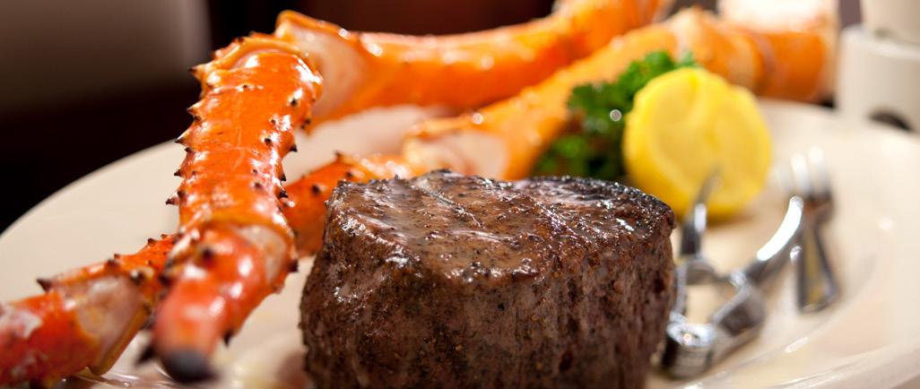 Starters such as the succulent cocktail shrimp, lobster cargot, or crispy onion ring tower whet the appetites of diners, and the classic caprese salad combination of tomatoes, basil, fresh mozzarella and balsamic vinegar provide a platform for garden produce to shine. Custom-aged U.S. Prime midwestern beef cuts comprise the steak menu, and varied sides, sauces, and accoutrements encourage diners to create their own flavor profile to satisfy their palates.