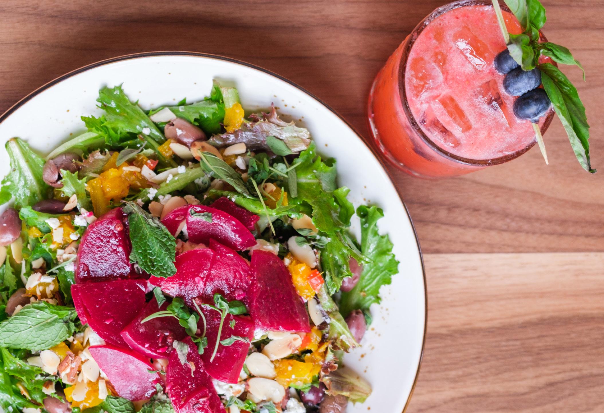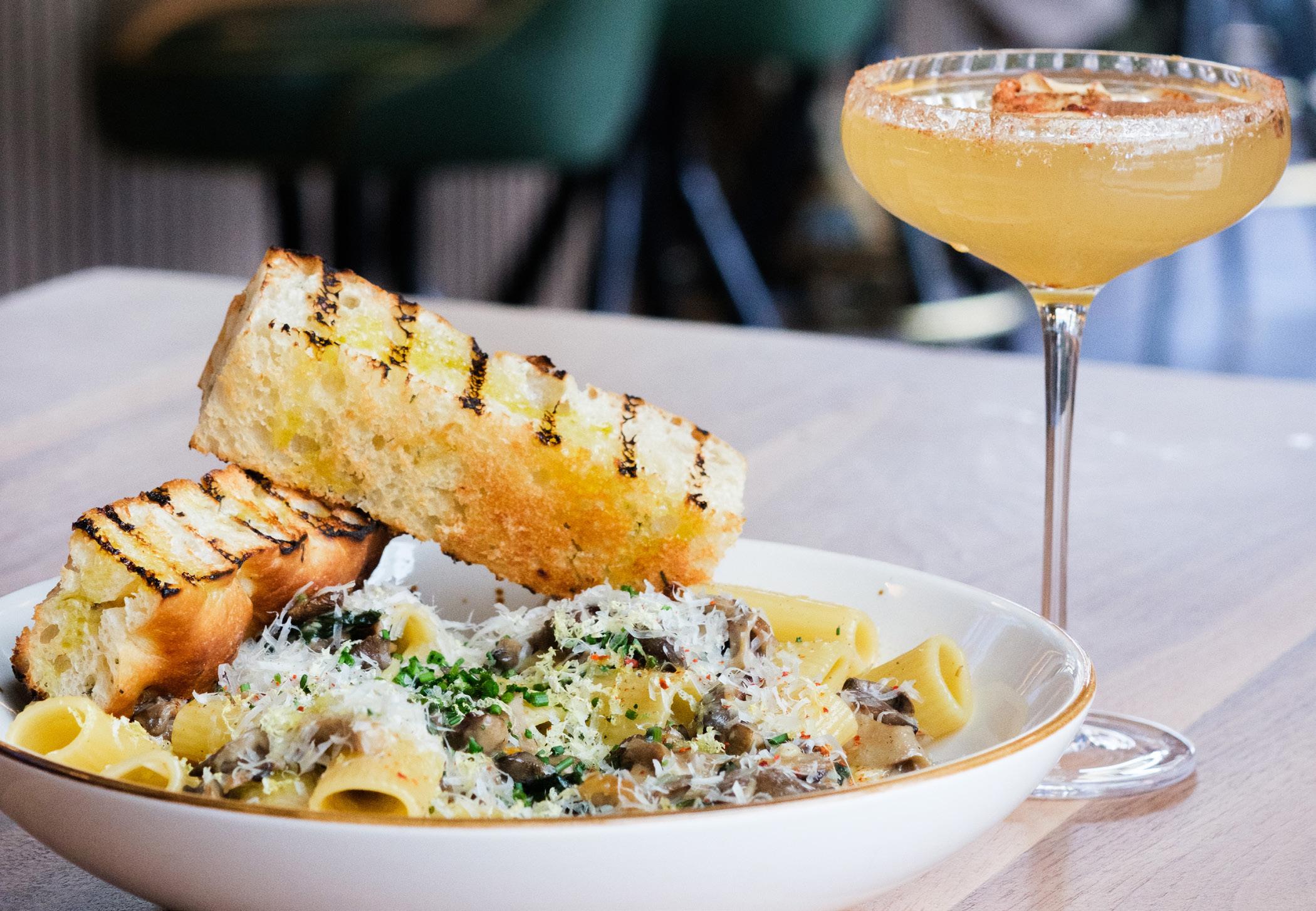 Vegetarians won’t feel sidelined. The panini-style mushroom melt layers button and oyster mushrooms—locally sourced from Flavor Country Farms near Honey Creek in Iowa’s Loess Hills— with caramelized and roasted poblano peppers, chipotle aioli, Milton Creamery aged white cheddar, and spinach on focaccia baked mere hours before serving. The roasted mushroom pasta doubles down: same local mushrooms, cream wine garlic sauce made to order, chiles, baby spinach, grated Grana Padano, thick rigatoni, and—naturally—freshbaked focaccia on the side. “I could live off of our bread and pasta,” Meegan said. “Actually, I think I probably do.”