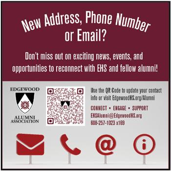 If this publication is addressed to family member who no longer maintains a permanent address at your home, please notify the Alumni Office at: EHSAlumni@edgewoodhs.org or in writing or by phone so we can update our records with new contact information.