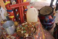 After the rise of the chair and christening of the clothes and of other objects linked to the cult, the owner of Gaga who, accompanied by a series of “experts” and who, in this case belong to the inner circle of the family, makes a series of acts of magical ritual to all of the members of the Gaga and proceeds to symbolically bathe the Gaga staff who will to start to remove the clothing from the temple to where the activity takes place in the morning.