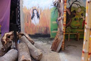 The Iron Fire Bar, known in voodoo as Bukan, as it is the place where the god of the same name inhabits, is located a few meters from the rustic wood construction (hounfour) that has a thatch roof made of sable palm fronts, and which, for the occasion its ceiling is decorated with bright colored paper forming a multicolored waterfall and which will accomodate hundreds of wordshippers, young and old adults of both sexes that at the begin the evening will arrive in motorcycles, by foot, or in loaded buses carrying sealed packages containing the clothing they will used during the three days of the rigorous pilgrimage that is part of the Gaga and which must not be seen until after the clothing are baptized in a ceremony where Catholicism prayers are sung and where the maximum dimension of Afro-Spanish cultural syncretism is exposed along with the mix of indigenous culture, that accompanies this cult maintained through its transformations. The god who dwells in the Bukan bar is offered grilled root vegetables, in a ceremony headed by Hungan.