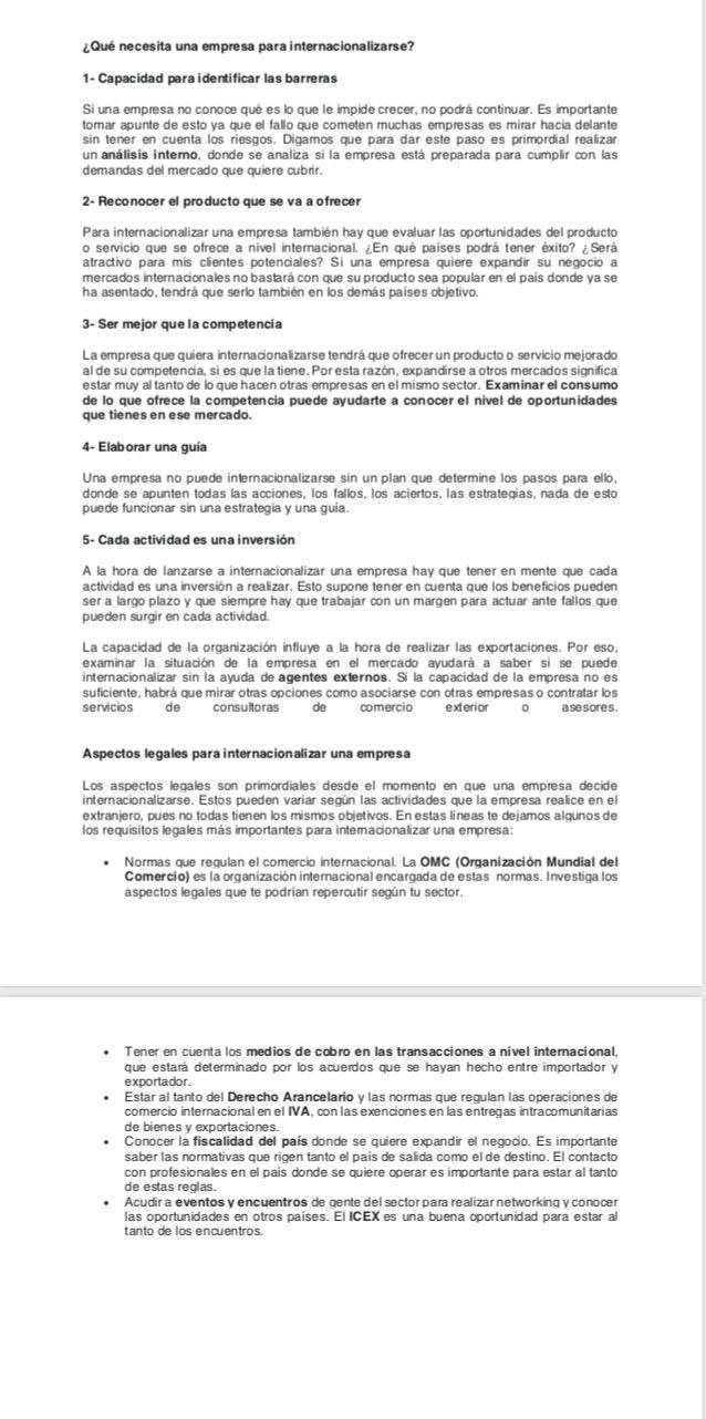 Texto 2 : ¿Qué necesita una empresa para internacionalizarse?