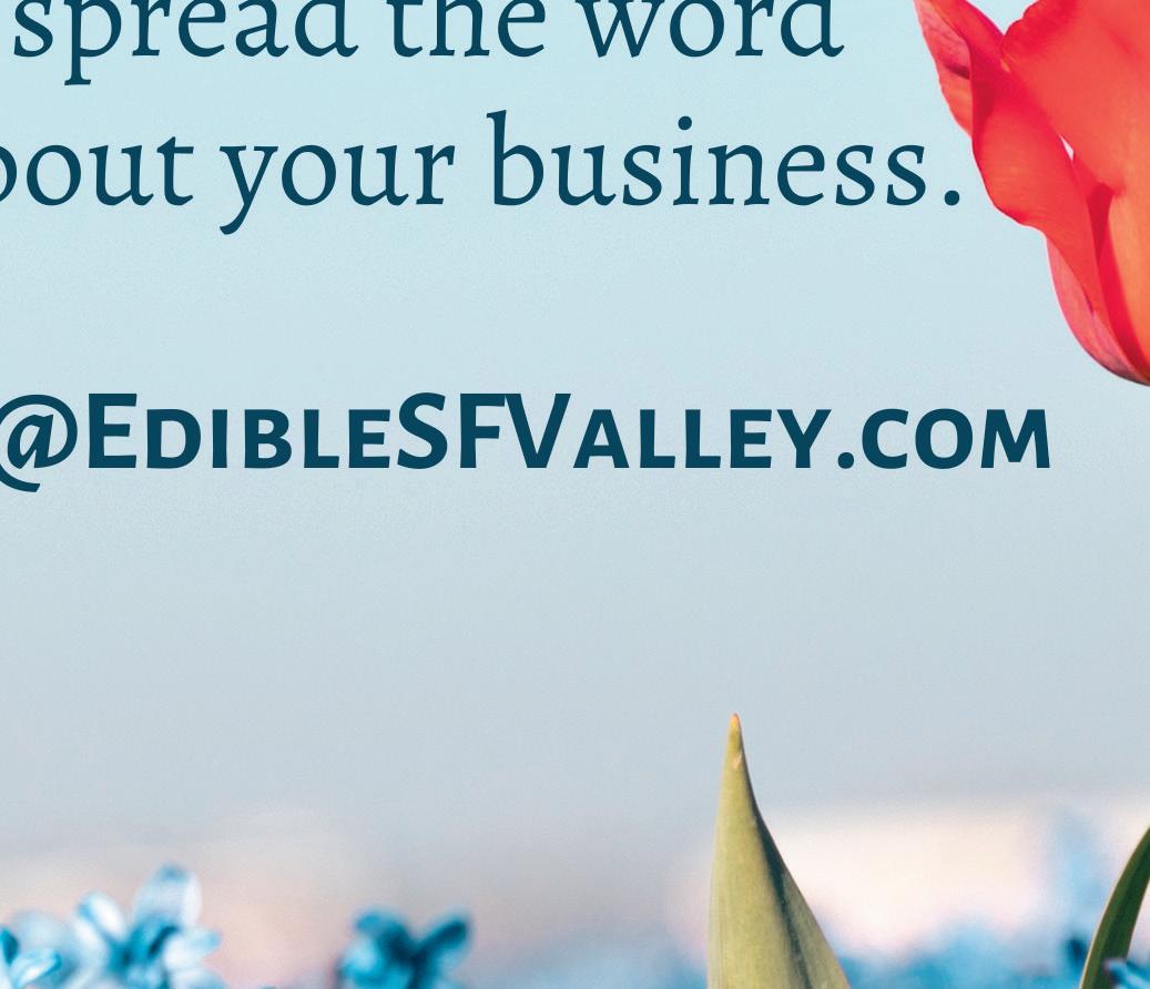 OUR MISSION: Currently in its first year, Edible San Fernando Valley has been founded to document and bring to life the interest in farmto-table, organic and natural foods, and to celebrate the people and communities who feed and sustain us. We want to inspire readers to support and celebrate the growers, producers, chefs, food and beverage artisans and other food professionals in our community.