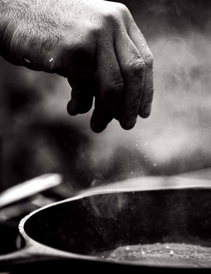 Chef Juan González salts a pan-fried Pacific mackerel filet. Find the recipe on page 11.