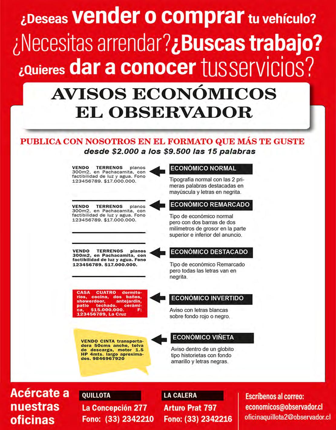 La mejor oferta está en los avisos económicos de EL OBSERVADOR