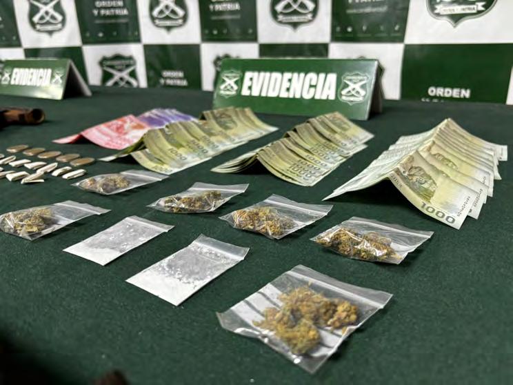A ello se sumó la incautación de pasta base de cocaína, clorhidrato de cocaína, marihuana, dinero en efectivo y diversos elementos para la dosificación de droga, evidencia que confirma el uso de ambos domicilios