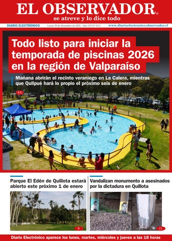 Todo listo para iniciar la temporada de piscinas 2026 en la región de Valparaíso Mañana abrirán el recinto veraniego en La Calera, mientras que Quilpué hará lo propio el próximo seis de enero 4-5