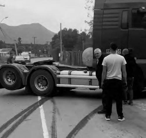 HIJUELAS.- Aunque se había difundido profusamente un acuerdo, especialmente con los transportes de empresas mineras que ocupan el estrecho camino de Romeral, que limitaba su paso y regulaba sus velocidades, los vecinos de Purehue -ubicada al inicio de la ruta señalada- siguen siendo testigos del transporte de grandes vehículos a una alta velocidad.El camino es estrecho, minimizado más aún por cierros vivos y malezas en las orillas. Un hecho que demuestra que algunos camiones no están respetando el acuerdo y tampoco lo límites que impone la Ley del Tránsito fue este camión que, el miércoles pasado, su conductor tuvo que hacer una compleja maniobra para evitar un choque con un bus, que lo dejó horizontal respecto del camino. Felizmente, no hubo alguna desgracia que lamentar.
