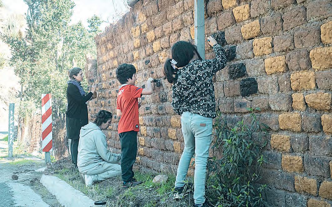 diantes, se revitalizaron más de diez muros con diseños geométricos y pinturas hechas con tierras locales, en sectores como Lliu Lliu, Pelumpen y La Dormida. “El adobe es una técnica ancestral que se adapta al entorno sin transformarlo, y tiene