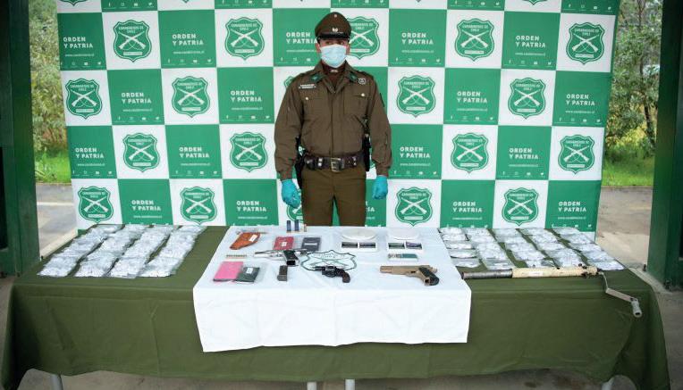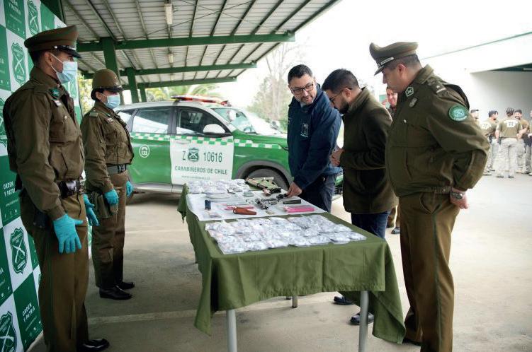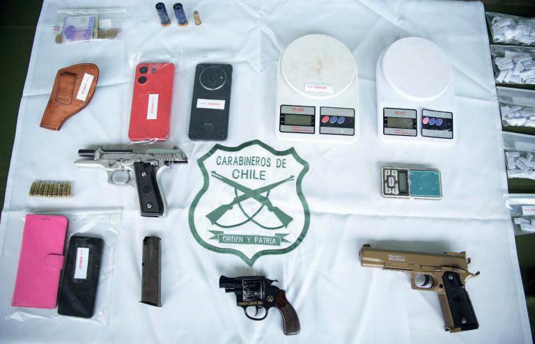 tó tras una denuncia anónima que motivó una investigación dirigida por la Fiscalía Local de Limache. Este miércoles, más de 70 efectivos allanaron tres domicilios en Lo Orval y uno en San Alfonso, logrando la captura de cinco chilenos y un extranjero —cuatro hombres y dos mujeres—, además de la incautación de más de mil dosis de pasta base avaluadas en $5 millones, un arma de fuego, un arma artesanal, dos armas de fogueo y municiones de distinto calibre.