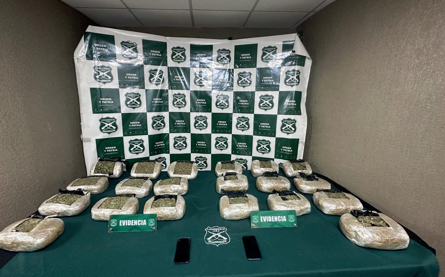 Casi 70 kilos de marihuana incautó Carabineros en tres operativos
