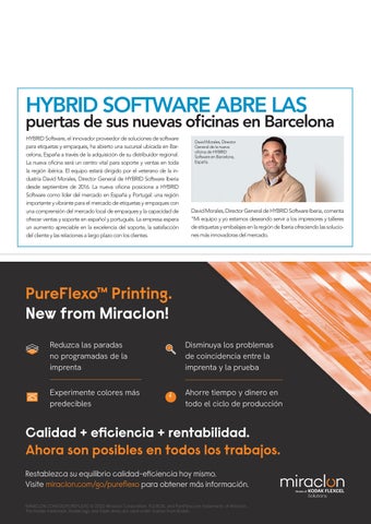 Calidad + eficiencia + rentabilidad. Ahora son posibles en todos los trabajos. Restablezca su equilibrio calidad-eficiencia hoy mismo. Visite miraclon.com/go/pureflexo para obtener más información. MIRACLON.COM/GO/PUREFLEXO © 2022 Miraclon Corporation. FLEXCEL and PureFlexo are trademarks of Miraclon. The Kodak trademark, Kodak logo and trade dress are used under license from Kodak.