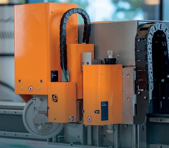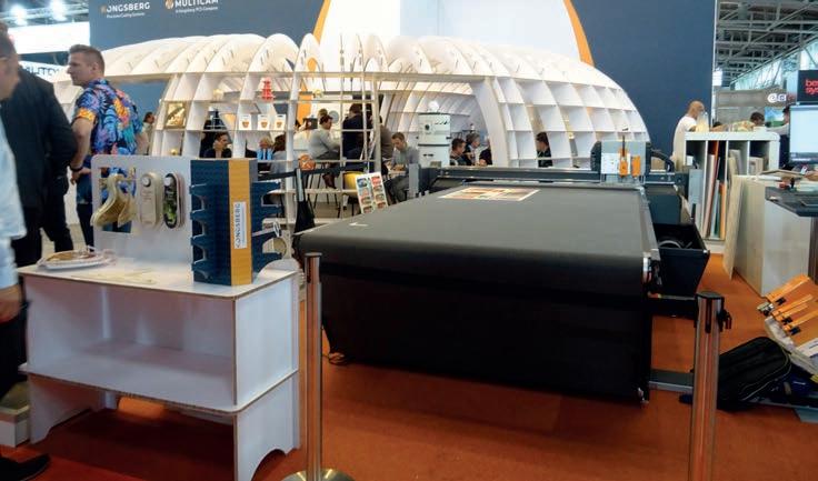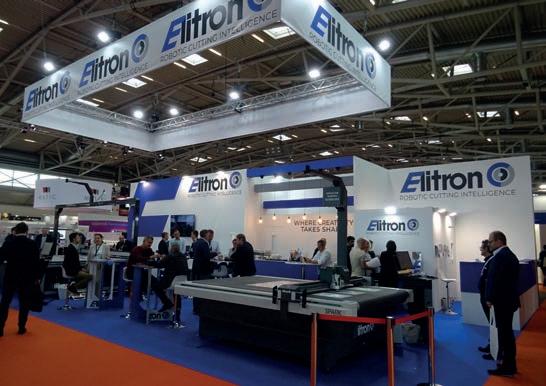 Elitron presentó la versatilidad de su última plataforma de sistema de corte multifunción para todos sus requisitos de acabado. La automatización completa de palet a palet también se ha llevado a un nuevo nivel y el Kombo TAV-R roll-in roll-out, totalmente automático, ahora también está disponible en la versión V2 con carga y descarga lateral.