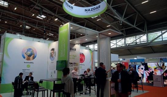 Nazdar ha desarrollado tintas de reemplazo ‘plug and play’ para impre soras de gran formato de fabricantes como Epson, Mimaki, Roland DG y más. Estas tintas ofrecen compatibilidad, calidad y rentabilidad excep cionales, y un proceso de conversión perfecto. Las tintas que se exhibie ron en FESPA incluyeron: Tinta Nazdar 706, 707 y 708 Series UV-LED para impresoras Mimaki JFX y UJF; Tintas Nazdar NDT DTF Series para cabe zales de impresión piezoeléctricos Epson I3200a; Tintas de inyección de tinta a base de solventes de la serie Nazdar 205 para impresoras Roland DG; tintas, barnices y adhesivos para aplicaciones especiales.