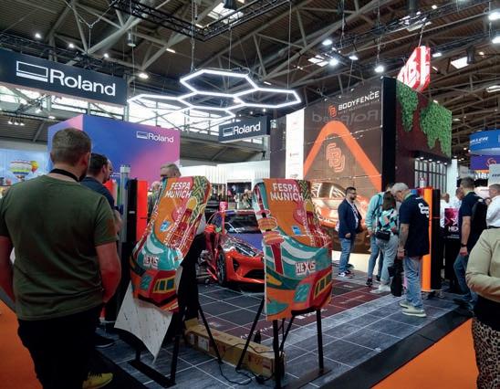 Roland exhibió una nueva línea de máquinas junto con algunas de las soluciones más populares y versátiles de la compañía. Se mostró la gama TrueVIS lanzada recientemente, que incluye la primera impresora de resina de Roland, la AP-640, las series MG y LG de máquinas de impresión y corte UV y las series VG3 y SG3 de impresoras/cortadoras eco-solventes.