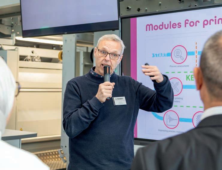 SCREEN Europe expresa su agradecimiento a los socios del evento, incluidos MBO KOMORI, Delfort y Koehler Paper. Su participación demostró la fortaleza de un ecosistema productivo totalmente integrado, desde la fabricación del sustrato hasta la finalización del producto. Un reconocimiento especial para Ralf Kutschera, Head of Strategic Purchasing en Faller Packaging, cuyo keynote fue el punto culminante del programa. Compartió conocimientos clave sobre más de diez años de transformación digital junto con SCREEN y sobre los requisitos específicos de esta aplicación tan crítica. Actualmente, Faller Packaging produce aproximadamente el 50 % de sus prospectos utili-