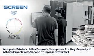 Acropolis Printers Hellas ha ampliado sus capacidades de impresión de periódicos en su planta de Atenas mediante la instalación de una segunda prensa digital inkjet SCREEN Truepress JET 520NX. Esta inversión estratégica representa un nuevo paso en su compromiso continuo de ofrecer soluciones de impresión digital fiables, de alta calidad y rentables para el mercado griego de la prensa escrita, al tiempo que refuerza su relación con SCREEN.