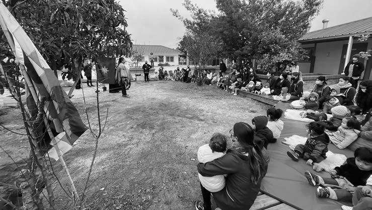 tributo al solsticio de invierno, celebrando la llegada del “nuevo sol”. Este centro educativo ha generado formas de la vida en común, de vivir el tiempo, de vida buena o vivir bien, con los valores de los pueblos originarios. El currículo opera como patrimonio sustantivo y vital para permear la cultura occidental, penetrando en las formas subjetivas de existencia por ser, pensar y hacer una nueva escuela de sumaqamaña. Estos temas y contenidos son muy relevantes en la educación para la ciudadanía y prioritarios en la política educativa por resaltar, acentuar, enfatizar o visibilizar. Los currícula de la primera infancia son cruciales para generar las bases de una sociedad más justa, junto con avanzar hacia una que pueda resguardar los derechos de niños y niñas, y permitirles su desarrollo pleno, dado que estos aprenden a ser ciudadanos y ciudadanas desde los primeros meses de vida al experimentar y vivenciar la colaboración, el compromiso y la participación democrática entre las familias, las educadoras y educadores, el barrio y el entorno, aunados por un proyecto común de bienestar y vida buena.