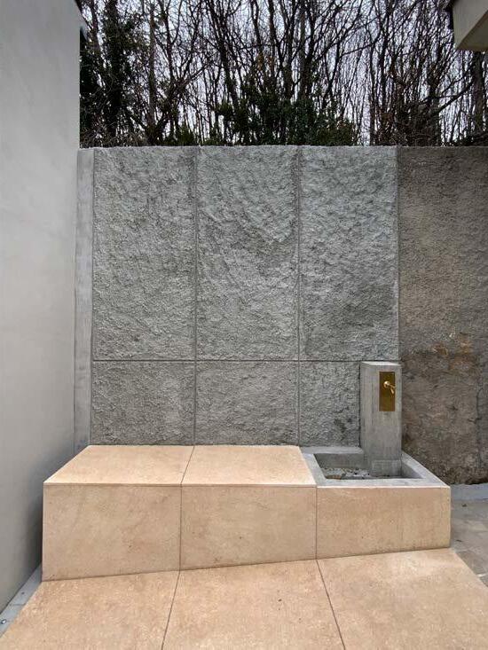 Il progetto riguarda la ristrutturazione di alcune zone all’interno del perimetro del cimitero esistente del Comune di Bergeggi. Si è trattato di un vero e proprio “taglia e cuci” per l’inserimento di due corpi loculi a torretta stretti fra i volumi del loculari esistenti e il rifacimento del servizio igienico. A lato di entrambi i volumi principali sono stati ritagliati alcuni spazi di servizio e di sosta. Il tentativo, seppur nella piccolissima taglia, è stato quello di attribuire a questi inserti un carattere di omogeneità di linguaggio che è data dalla scelta di un unico materiale che si ripiega su volumi molto semplici. La pietra scelta ha la peculiarità di essere molto omogenea da lontano salvo poi svelare una miriade di aggregati fossili visibili a occhio nudo mano a mano che ci si avvicina. Quello che interessava far emergere in questo in questo lavoro è la ricerca del carattere del luogo, ricerca che la progettista riserva a ogni suo progetto. A volte questo carattere deve pressoché inventato; più spesso invece esiste già e deve scoperto e rafforzato attraverso il progetto.