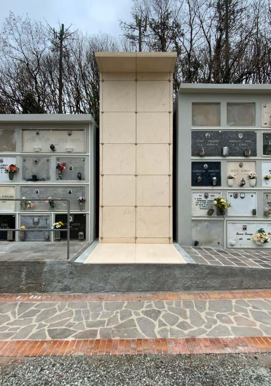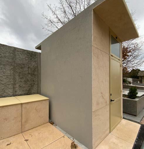 Per rispondere a tale necessità si è optato per l’utilizzo di elementi prefabbricati, sia per il bagno con l’uso di un monoblocco cementizio rivestito, sia per i nuovi loculari, interamente realizzati con una tecnologia in pannelli componibili di vetroresina.