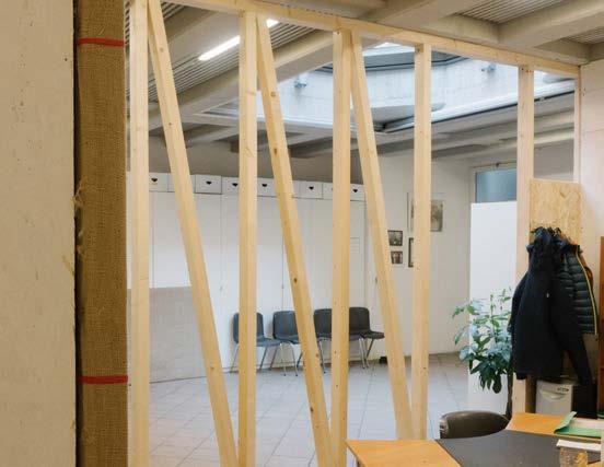 sia come locale occasionale per riunioni e deposito. La richiesta era di riorganizzare lo spazio con risorse molto limitate. Si è quindi deciso di optare per l’autocostruzione, così da ridurre i costi, e per l’utilizzo di soli materiali naturali, facili da assemblare e da dissassemblare, per assicurare un fine vita senza creazione di rifiuti.