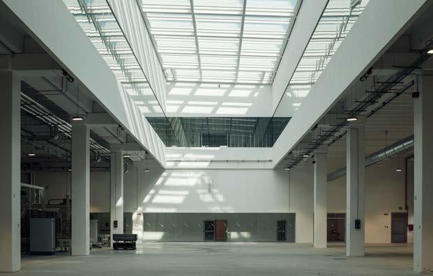 MZ02 è stato accuratamente progettato per ridurre al minimo i consumi energetici. La copertura e i camminamenti esterni sono rivestiti in materiali chiari per ridurre gli effetti delle isole di calore. L’involucro verticale è costituito da una facciata ventilata in elementi prefabbricati in cemento, rivestito in mattoni chiari che abbatte gli effetti dell’irradiamento solare. I serramenti a taglio termico sono a bassa trasmittanza; i vetri basso-emissivi sono studiati per sfruttare la luce naturale nelle aree laboratori riducendo gli abbagliamenti senza la necessità di un sistema di oscuranti aggiuntivo.
