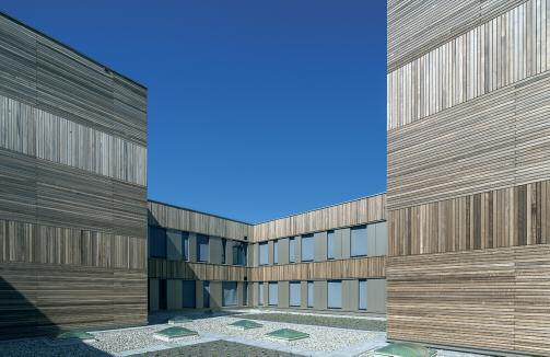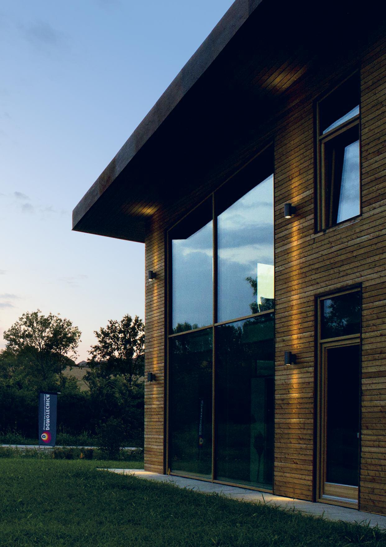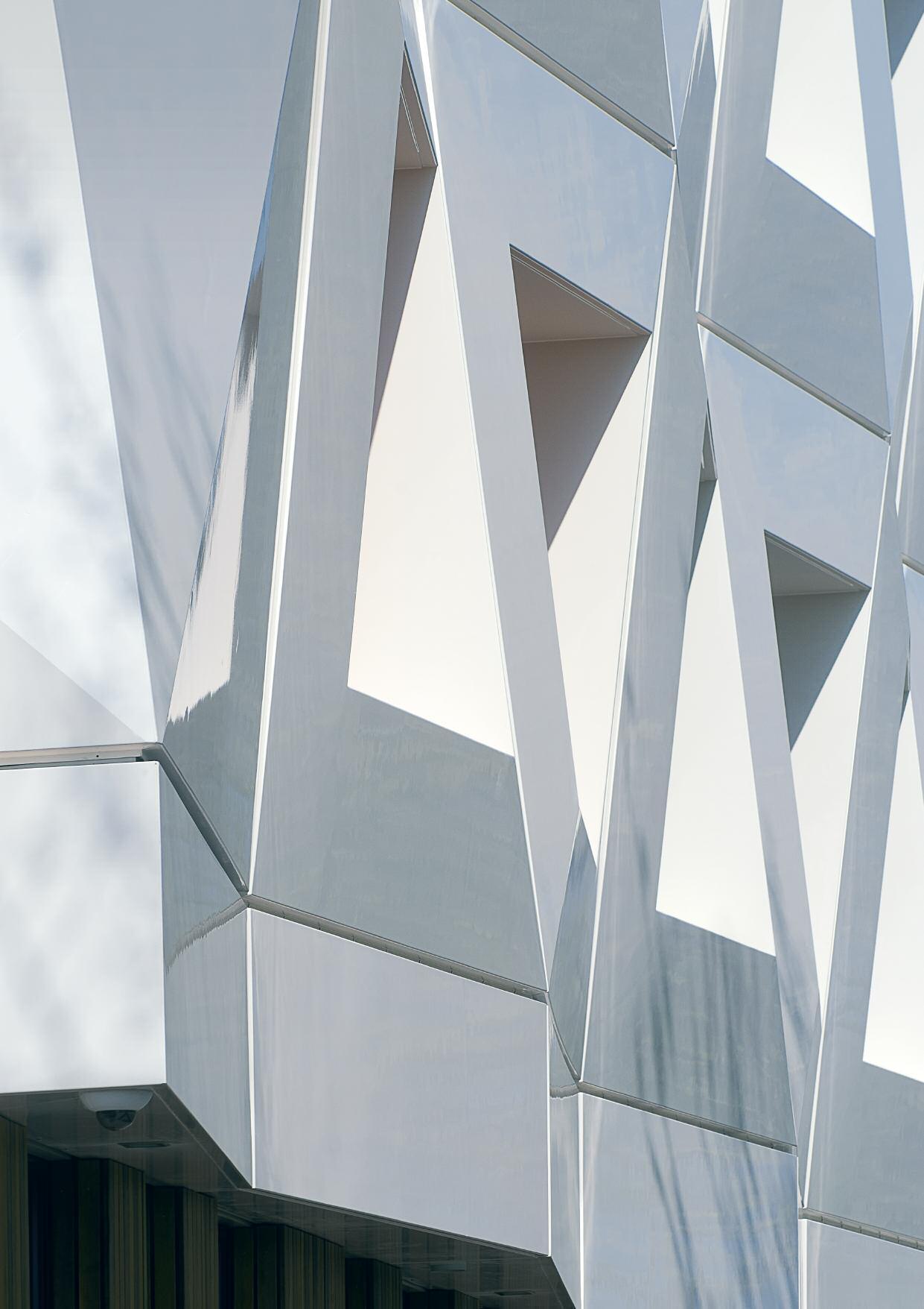 Elementi fotovoltaici di grandi dimensioni e integrati architettonicamente coprono la quasi totalità della facciata e della copertura combinando le esigenze di tipo tecnico con quelle estetiche in una efficace integrazione architettonica