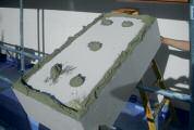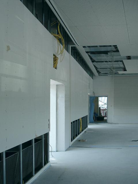 Sotto, a destra, un’altra vista del corridoio con la parete fotovoltaica in fase di cantiere.
