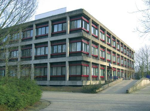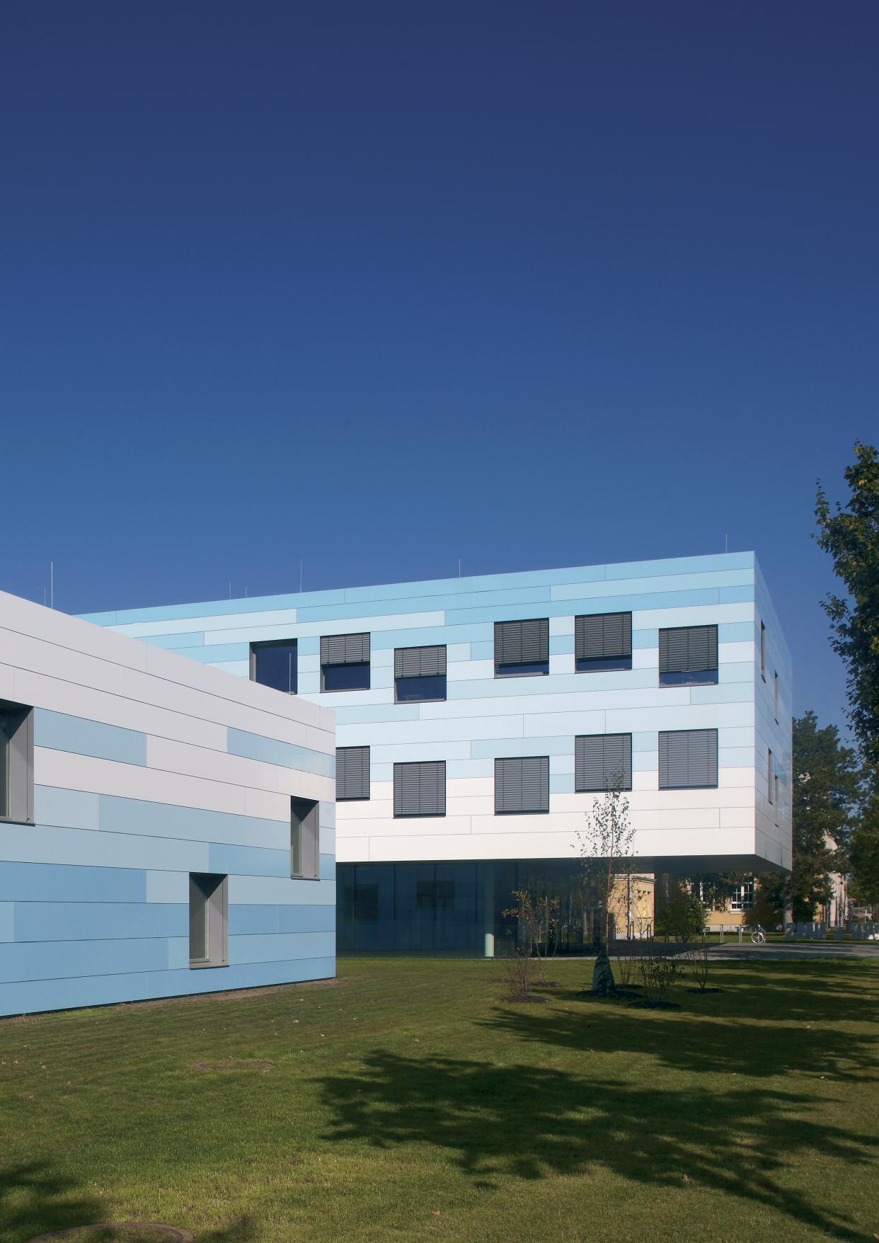 Poiché l’edificio si colloca in una zona alluvionale soggetta a rischio di esondazione del fiume Fulda, il primo passo intrapreso è stato quello di trovare una soluzione a questo possibile problema sopraelevando l’edificio da terra Si è creata così una sorta di ”isola” che sembra fluttuare sui pilastri obliqui e con il piano principale dell’edificio che viene in questo modo a tro-