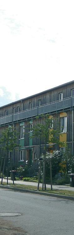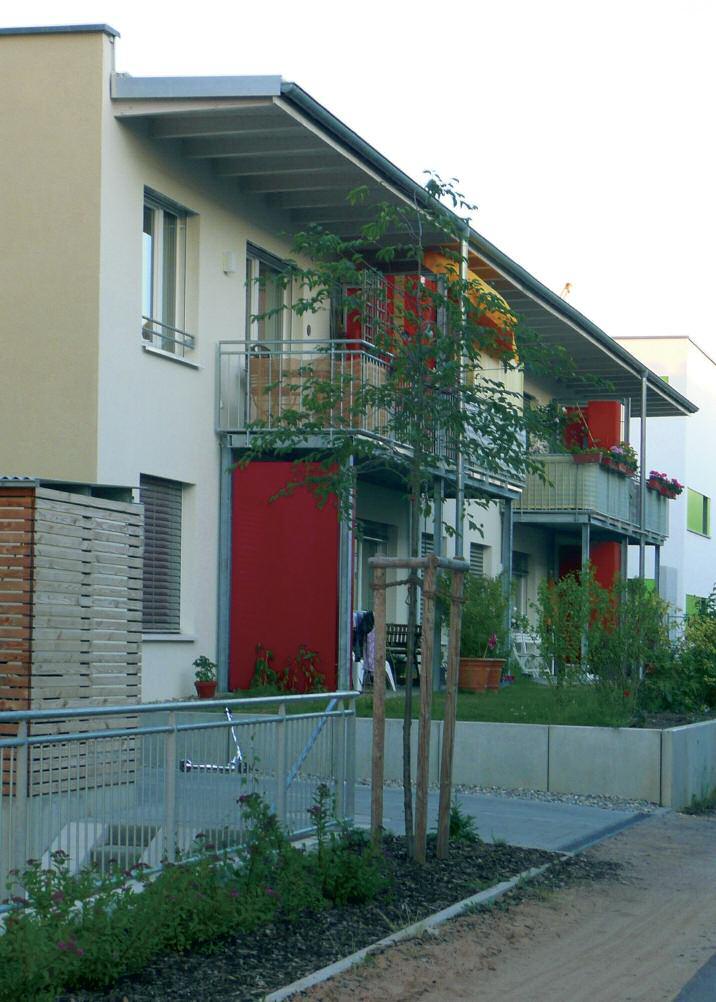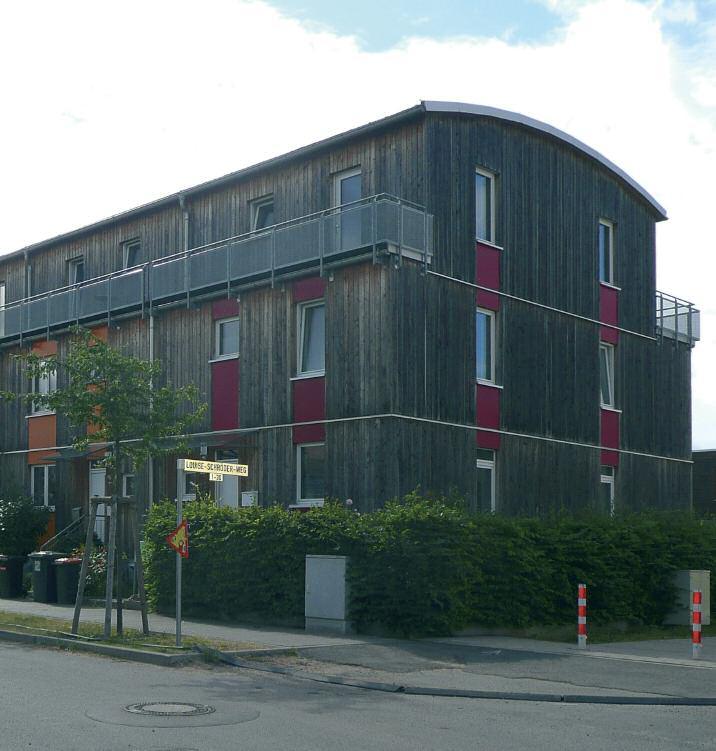 Sopra, edificio passivo nel quartiere di Kranichstein, a Darmstadt