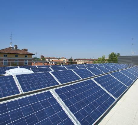 impianto fotovoltaico fisso potenza 31,7 kWp dalla facciata potenza 58,7 kWp dal tetto impianto fotovoltaico a inseguimento solare potenza 30 kWp (11 impianti per 45 m2 di superficie ciascuno)