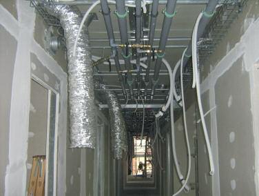 Ancora gli scambiatori di calore a soffitto nel corridoio a sud e la parete fotovoltaica