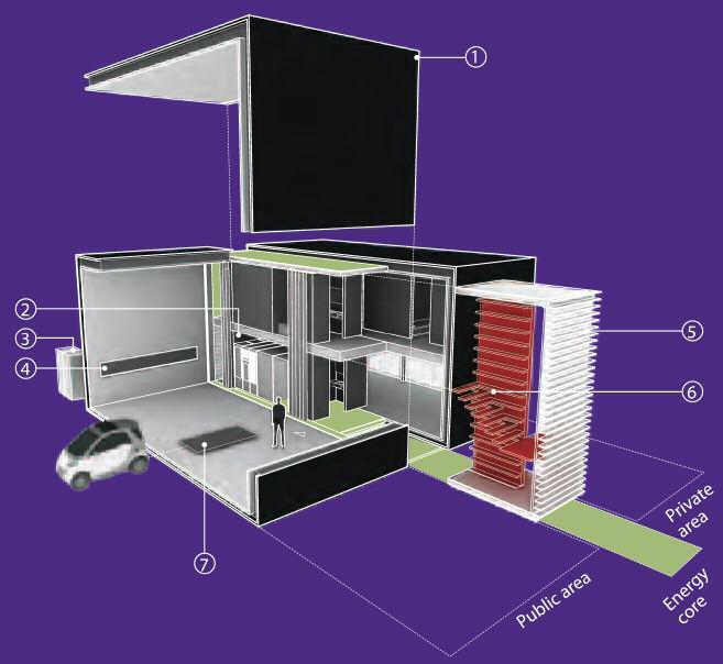 a delle batterie, può essere tenuta sotto controllo e gestita dagli abitanti attraverso due touch panels e attraverso smartphones