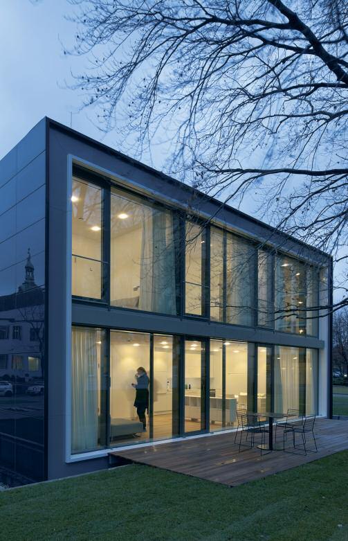 L’equipaggiamento tecnico è collocato a vista nel cosiddetto “energy core” della casa ed è parte integrante del concetto informativo del progetto: grazie alle vetrate la tecnologia impiegata è visibile e comprensibile a tutti i visitatori