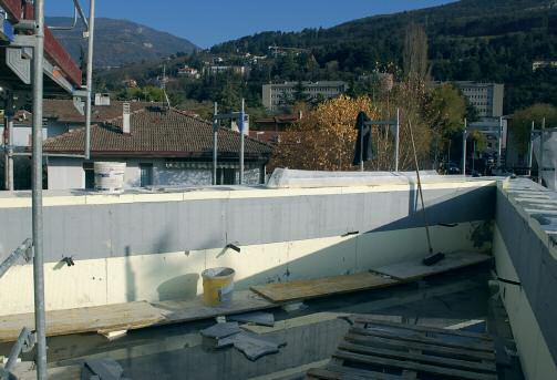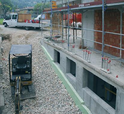La posa di uno degli elementi del solaio contro terra prefabbricato.