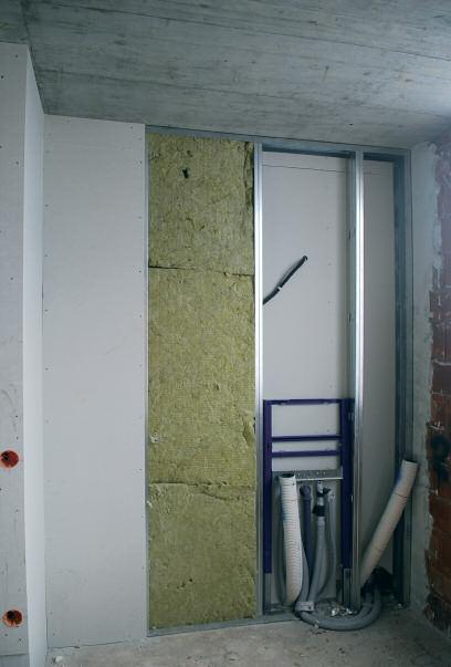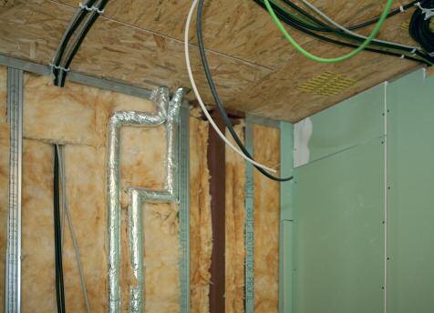 a) L’isolamento in canapa delle tubature; b) l’isolamento delle pareti;