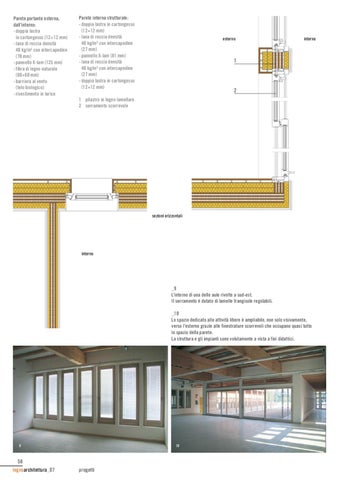 Parete interna strutturale: - doppia lastra in cartongesso (12+12 mm) - lana di roccia densità 40 kg/m3 con intercapedine (27 mm) - pannello X-lam (81 mm) - lana di roccia densità 40 kg/m3 con intercapedine (27 mm) - doppia lastra in cartongesso (12+12 mm)