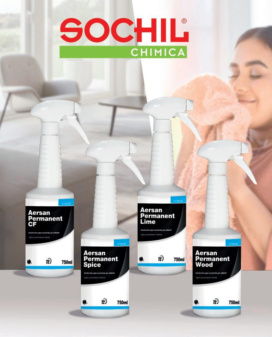 L’obiettivo è coprire tutte le esigenze di deodorazione che per Sochil si sviluppa su tre livelli: ambienti, superfici e biancheria; in tal modo l’ospite percepisce continuità, cura e comfort, mentre il gestore ottimizza procedure e risultati, standardizzando l’effetto “pulito” dall’ingresso fino al guardaroba. www.sochilchimica.it