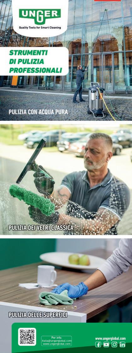 cm. Tergivetro ergonomico da 45 cm, panno in microfibra, raschietto e fondina. Con queste novità, UNGER rafforza il suo impegno a rendere la pulizia professionale ancora più efficiente, sicura e sostenibile. www.ungerglobal.com