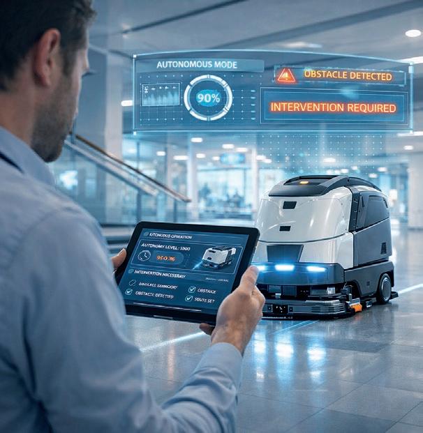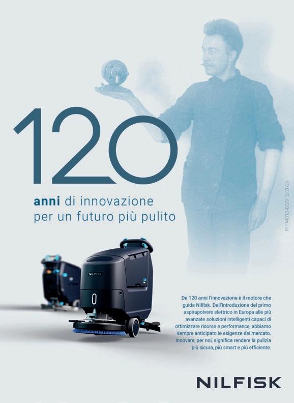 operativa, riduzione dei costi indiretti e risultati costanti, liberando il personale per attività a maggior valore aggiunto. Protagonisti della gamma Nilfisk sono SC25 e VP25, una coppia progettata per lavorare in perfetta sinergia o in modo indipendente, offrendo massima flessibilità operativa. La SC25, lavasciuga compatta e maneggevole, è ideale per spazi aperti di piccole e medie dimensioni (500–2000 m²). Il raggio di sterzata a zero gradi consente una pulizia precisa lungo i bordi, mentre il sistema di navigazione intelligente assicura movimenti sicuri ed efficienti anche in ambienti complessi. Il VP25, aspiratore robotico versatile per superfici dure e tessili (500–2400 m²), completa l’intervento garantendo silenziosità, efficienza e prestazioni costanti, anche in contesti dinamici. Operando in sinergia, SC25 e VP25 creano