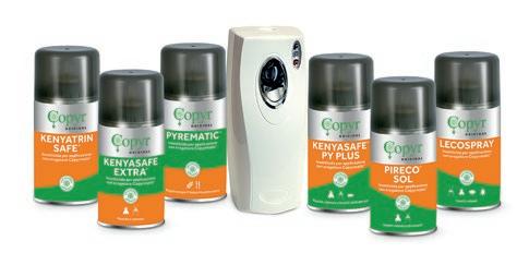 Le bombole vengono utilizzate con Copyrmatic®, l’erogatore automatico programmabile che rilascia a intervalli prestabiliti una quantità definita di prodotto, garantendo un’azione uniforme senza interventi manuali. Grazie al design discreto e alla silenziosità, il sistema è adatto anche agli ambienti aperti al pubblico.