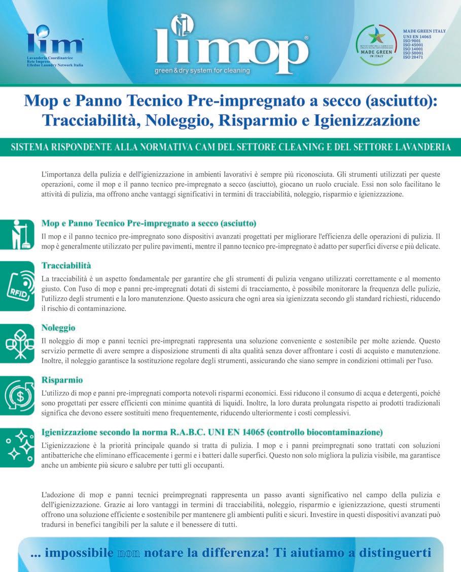 Limopè il sistema integrato di noleggio, ricondizionamento e tracciabilità di mops e panni tecnici proposto da LIM in tutta Italia. Avvalersi di Limop significa: