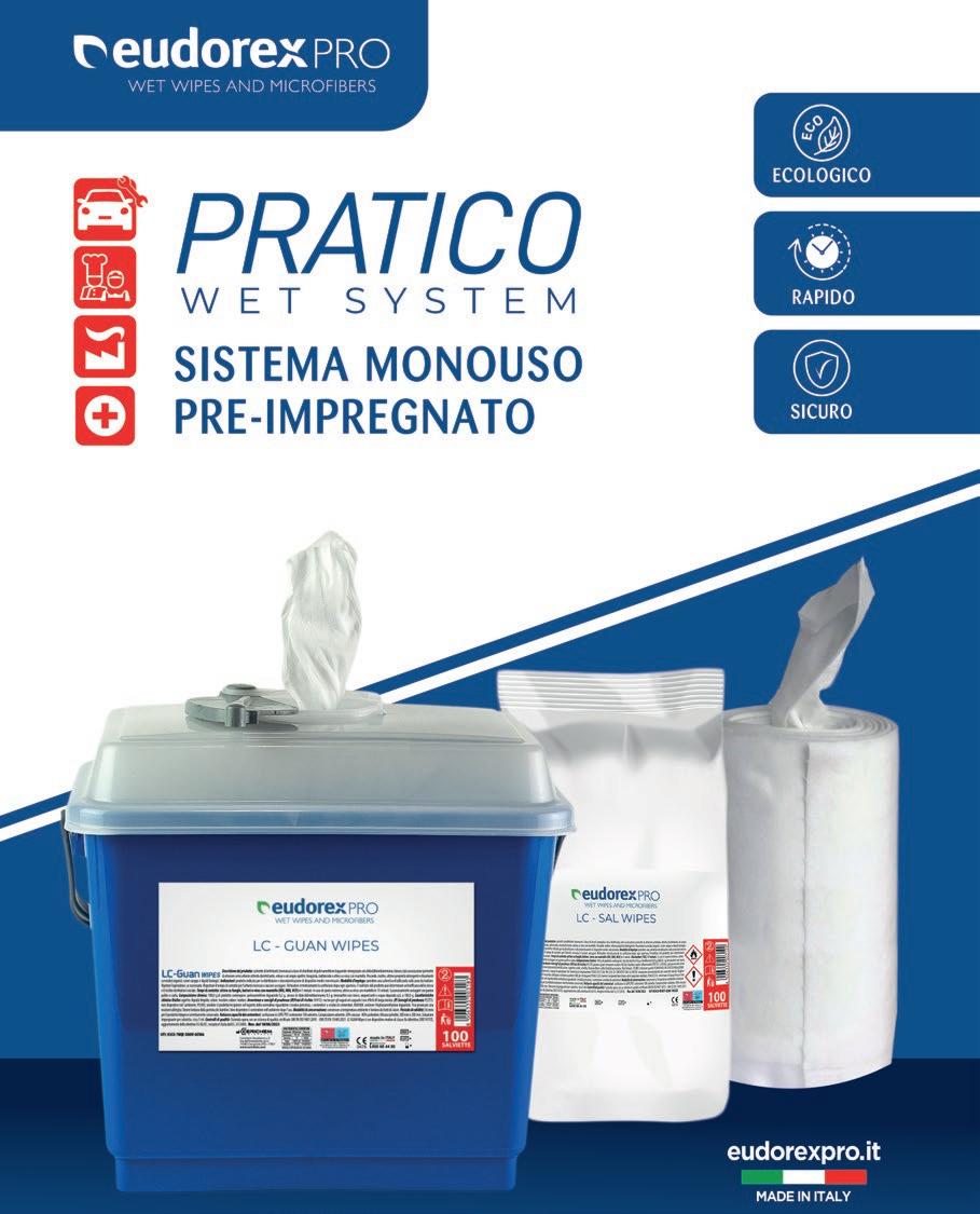 • asciutti e pronti all’uso, pre-impregnati a secco col principio attivo detergente, da riattivare mediante immersione in sola acqua prima dell’utilizzo;