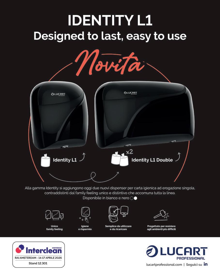 Con la gamma Identity, Lucart Professional rafforza una visione chiara: non offrire al mercato singoli prodotti, ma un sistema evoluto, performante e sostenibile, in grado di supportare i professionisti nella gestione efficiente e responsabile delle aree washroom. Una gamma che integra estetica, affidabilità e attenzione ai consumi, contribuendo alla definizione di standard più avanzati per la cura e la funzionalità degli spazi dedicati all’igiene. www.lucartprofessional.com