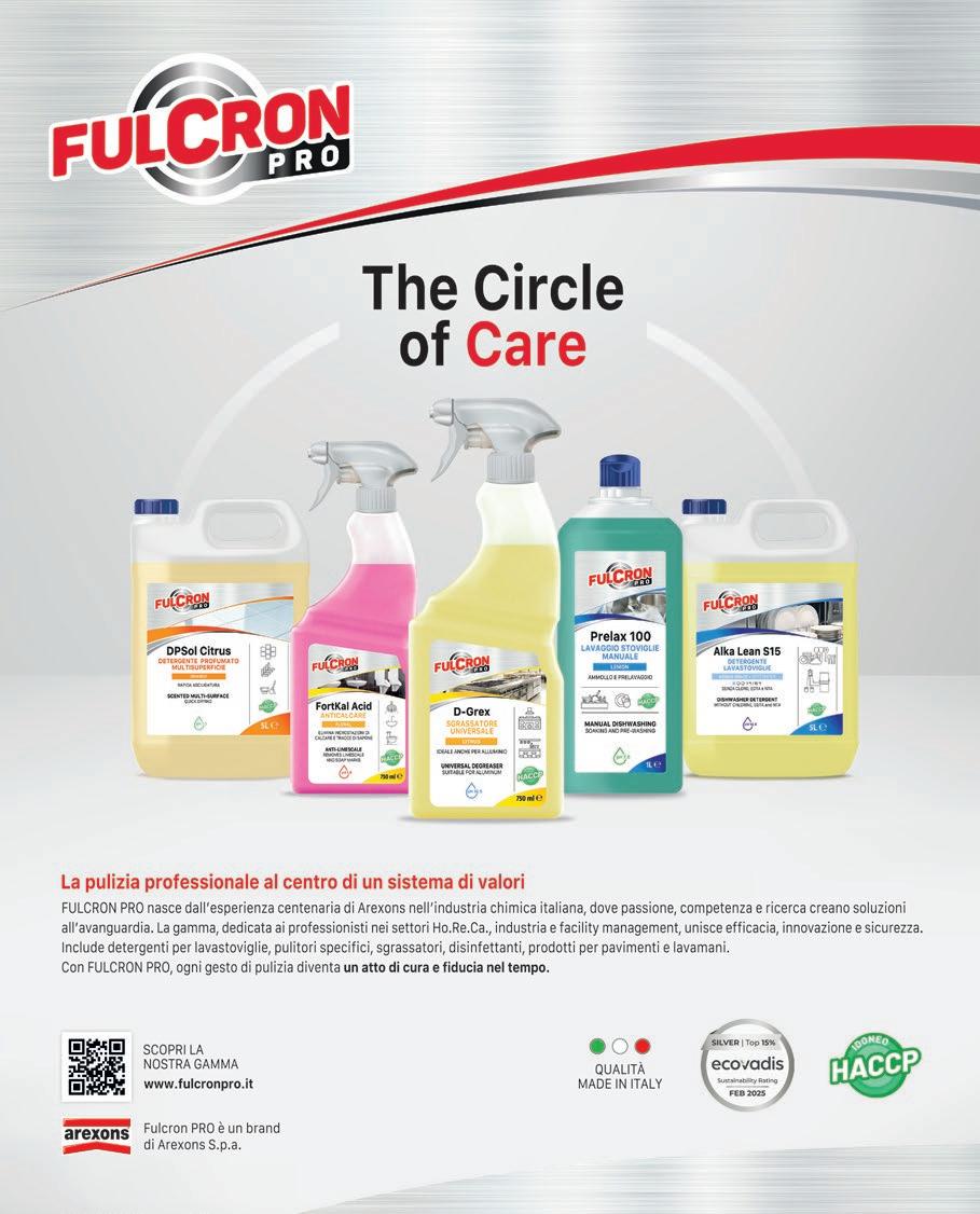 Su questo approccio si fonda Fulcron PRO, progetto sviluppato da Arexons per offrire agli operatori professionali un sistema strutturato di detergenza, basato su qualità, tecnologia e supporto operativo. Forte di un know-how consolidato, il brand propone una gamma pensata per rispondere alle esigenze concrete di chi opera in ambienti ad alta intensità lavorativa.