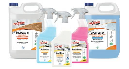 per la rimozione di grassi e residui organici, Fornil 860 per la decarbonizzazione di forni e griglie, Steel Gloss per le superfici in acciaio inox, Active Lux per vetri e superfici dure. Completano l’offerta FortKal Acid, per la rimozione dei depositi calcarei, e FortKal Bagno, per la manutenzione quotidiana degli ambienti igienici.