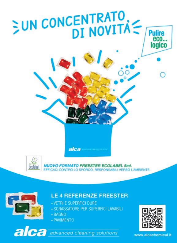 e manutentore, igienizzante, sgrassatore, le ultime realizzate invece sono l’ammorbidente e i lavapavimenti concentrati con le profumazioni delle tanto ricercate Floor Essence. Pratiche e facili da usare, dosaggio preciso, riduzione della CO2 e dei rifiuti. www.alcachemical.it