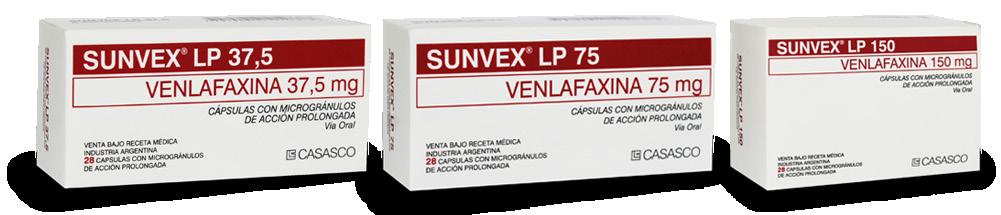 • Sunvex LP 75 : Caja x 4 blíster x 7 cápsulas con microgranulos de acción prolongada + inserto. Caja x 1 blíster x 7 cápsulas con microgranulos de acción prolongada + inserto.