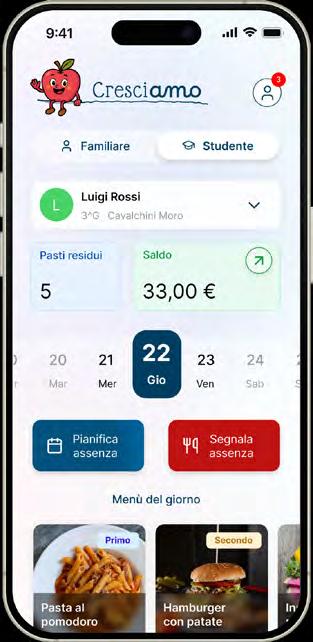 CresciAMO offre una piattaforma completa e interattiva per semplificare e ottimizzare il servizio mensa, coinvolgendo attivamente sia i genitori che i bambini. La nostra mascotte, AMO, aiuta i più piccoli a imparare l’importanza di una alimentazione sana, rendendo l’esperienza d’uso educativa e piacevole.